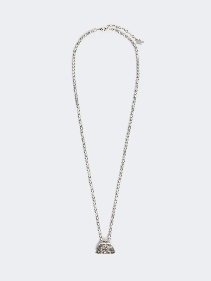 necklace consisting of a string of beads and a pasticcino bag-shaped pendant.