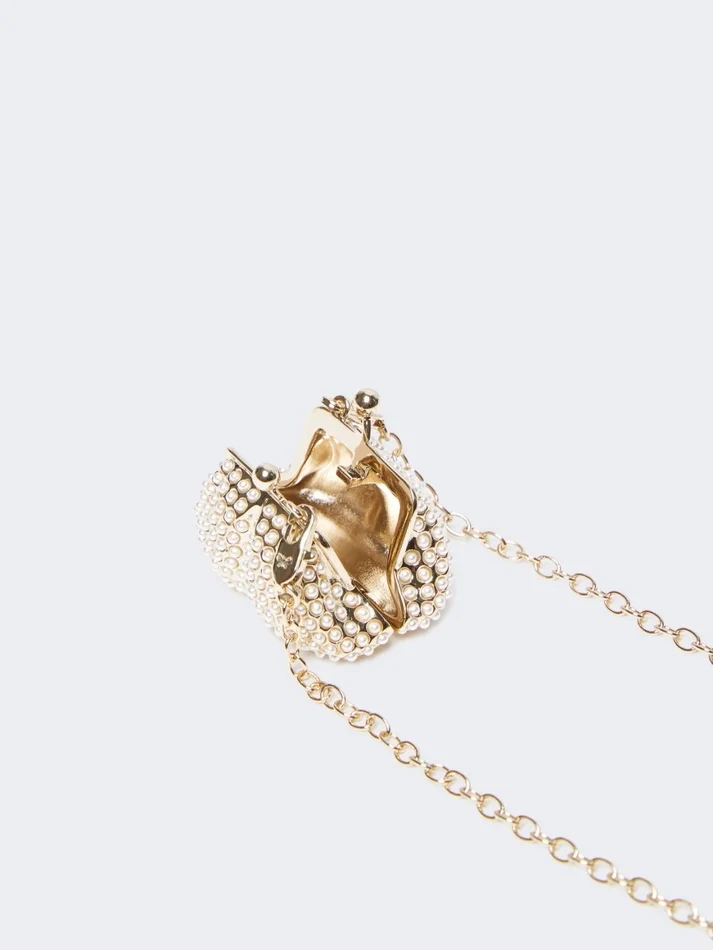 chain necklace featuring a pasticcino bag-shaped pendant, complete with embedded micro pearl detail.