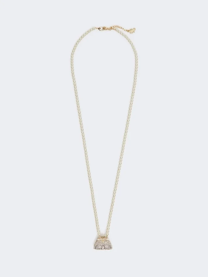 necklace consisting of a string of beads and a pasticcino bag-shaped pendant.