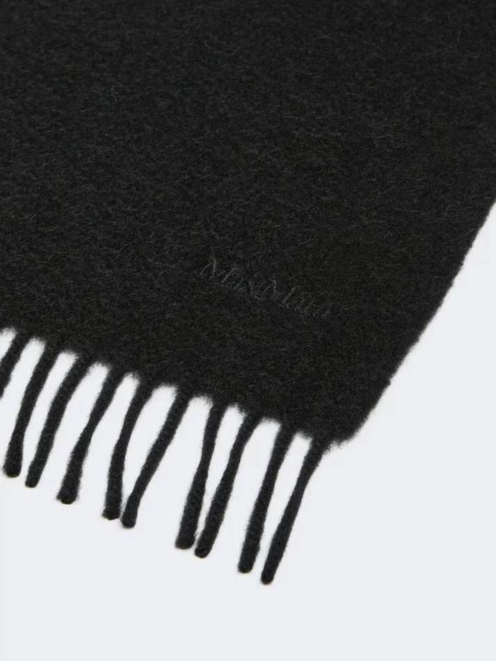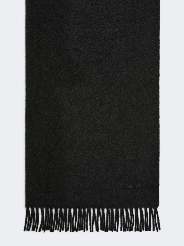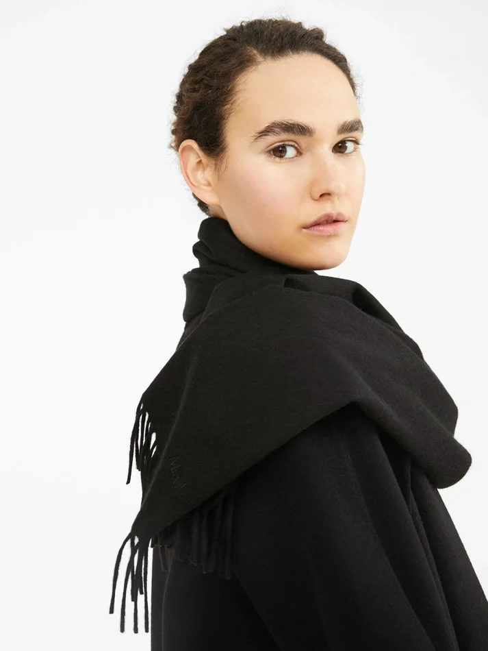 wide and enveloping stole featuring embroidered max mara lettering detail at the hem.
