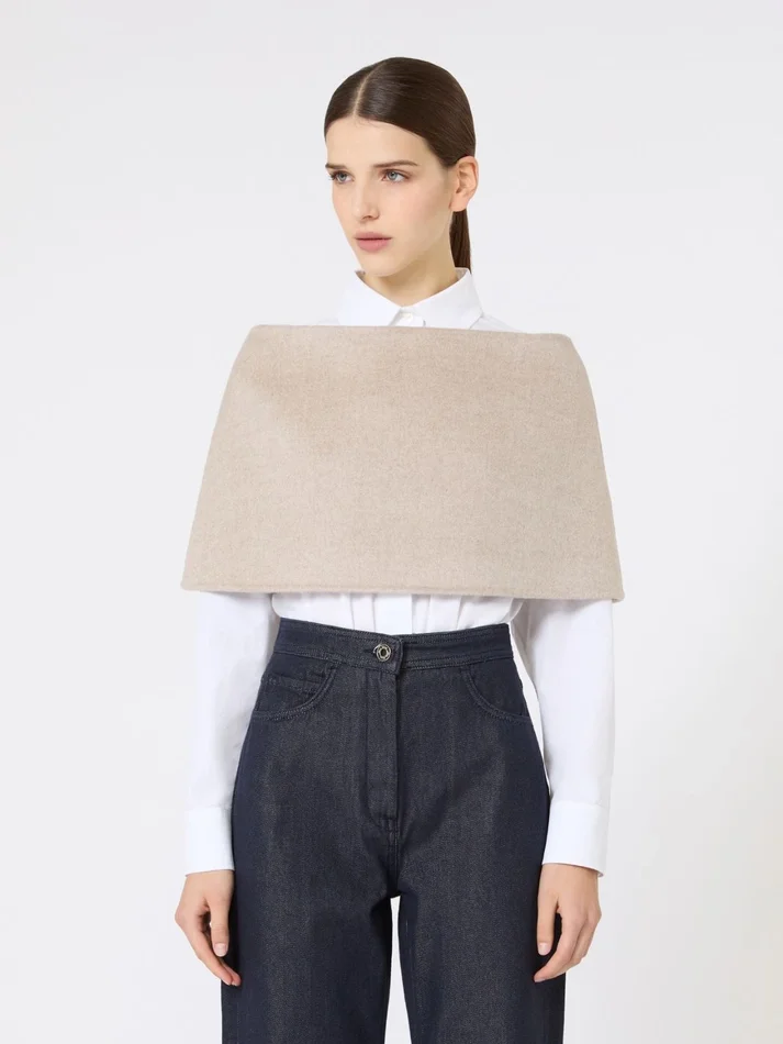 infinity scarf with a structured and slightly flared design.