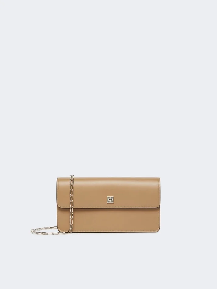 - flap fastening adorned with a max mara-branded metal pyramid press stud