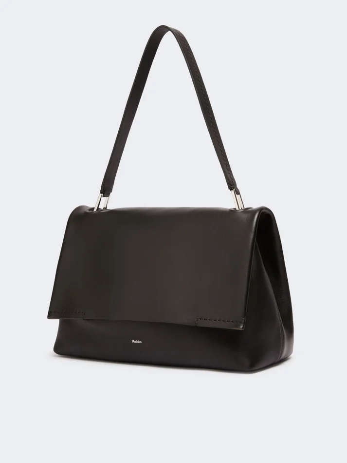 archetipo bag in a new folded version with a folded flap on the front. finished with a tailor’s pick stitch and metal max mara logo.