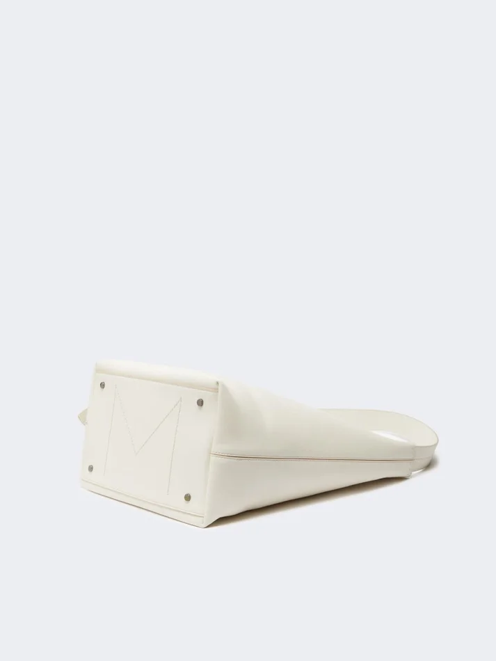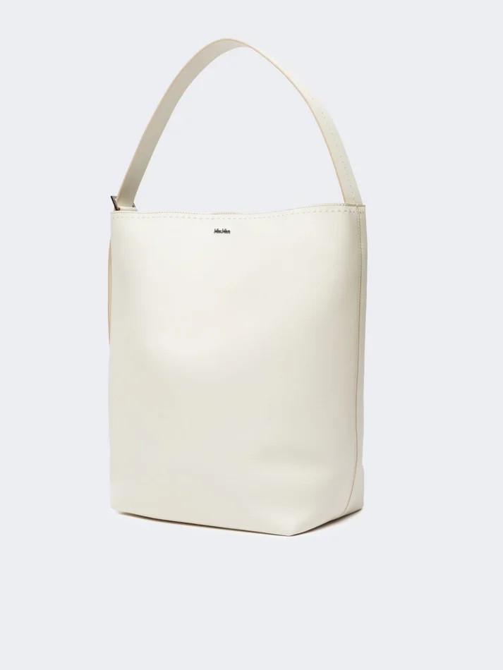 medium archetipo bucket bag in a playful and essential design, with an unlined effect. finished with a tailor’s pick stitch and metal max mara logo.