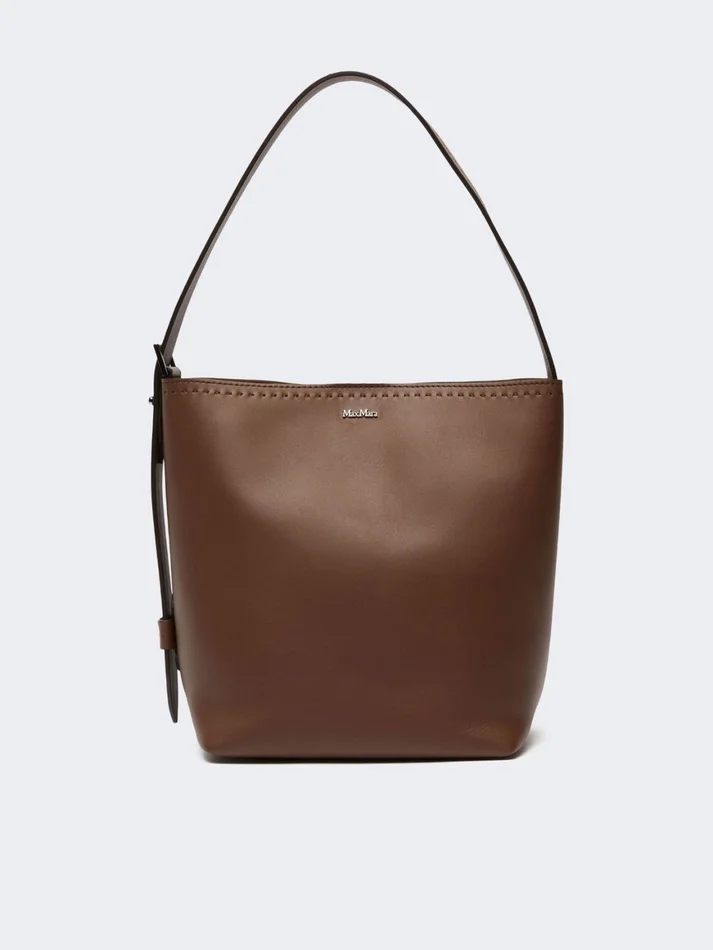 small archetipo bucket bag in a playful and essential design, with an unlined effect. finished with a tailor’s pick stitch and metal max mara logo.