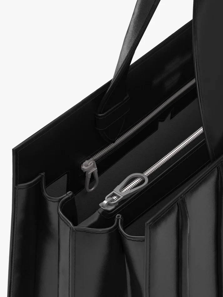 - internal partition with zip and ring for small leather items