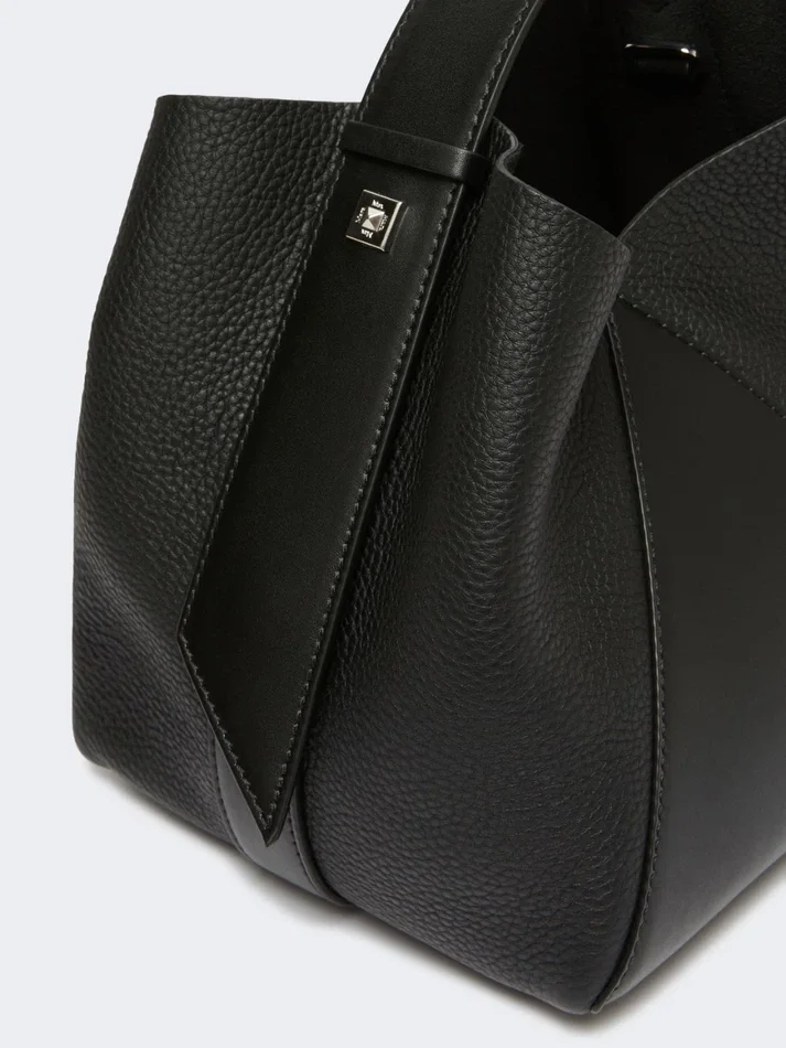 small bucket bag, in a soft and unlined design with a square base and large internal compartment. to be carried on the shoulder or crossbody.