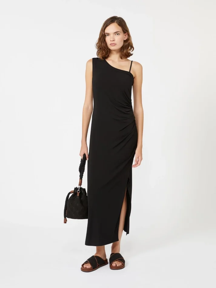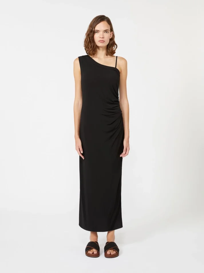 Jersey one-shoulder dress, black