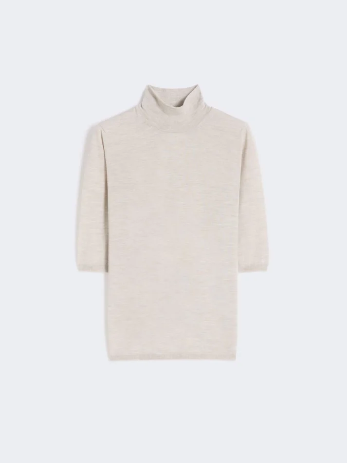 Be the first to review “Stockinette-stitched wool polo-neck sweater, powder”