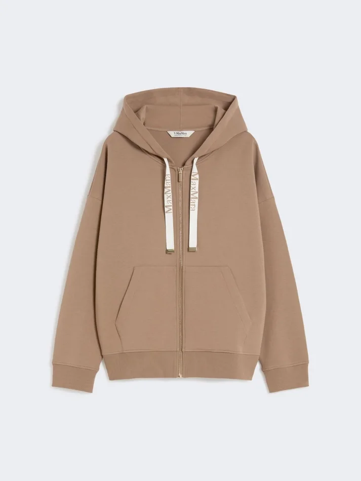 drawstring-hood sweatshirt with branded jacquard ribbons.