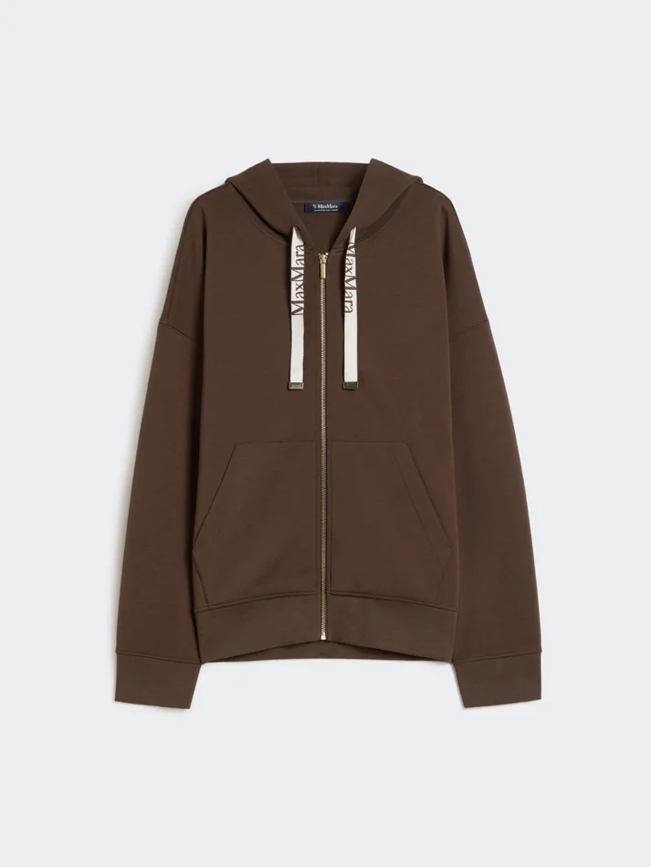 Technical jersey zip-up sweatshirt, chocolate