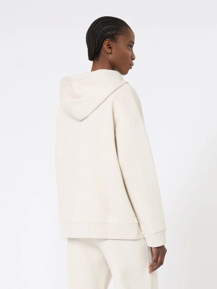drawstring-hood sweatshirt with branded jacquard ribbons.