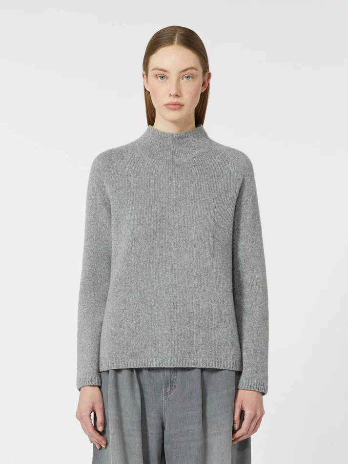 Wool and cashmere yarn polo-neck sweater, medium grey