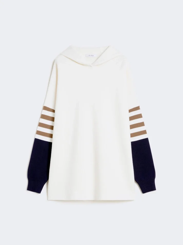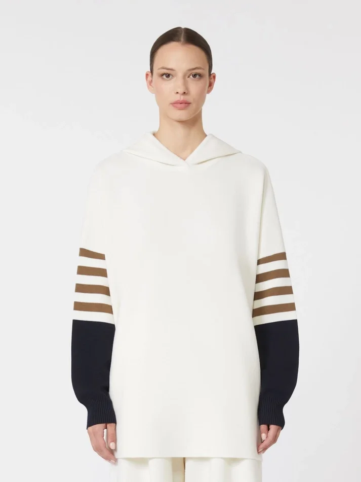 hooded jumper with a straight, slightly elongated line and oversized fit.