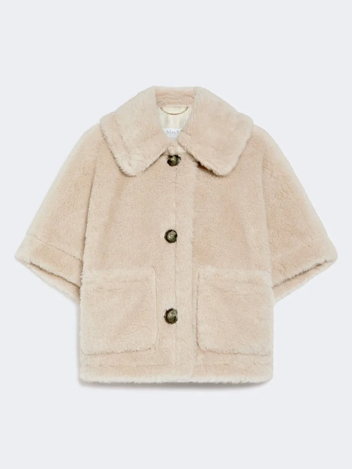 - cape in alpaca and wool teddy fabric, set on a silk base