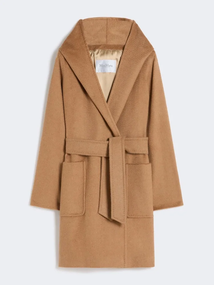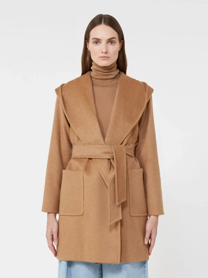 • coat in sable-look pure camel broadcloth