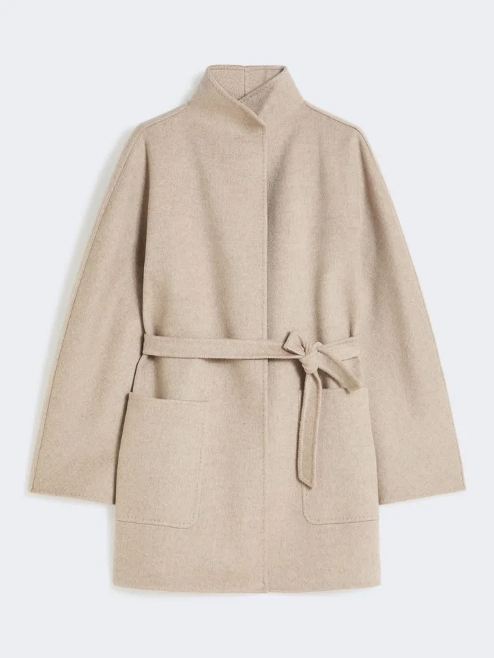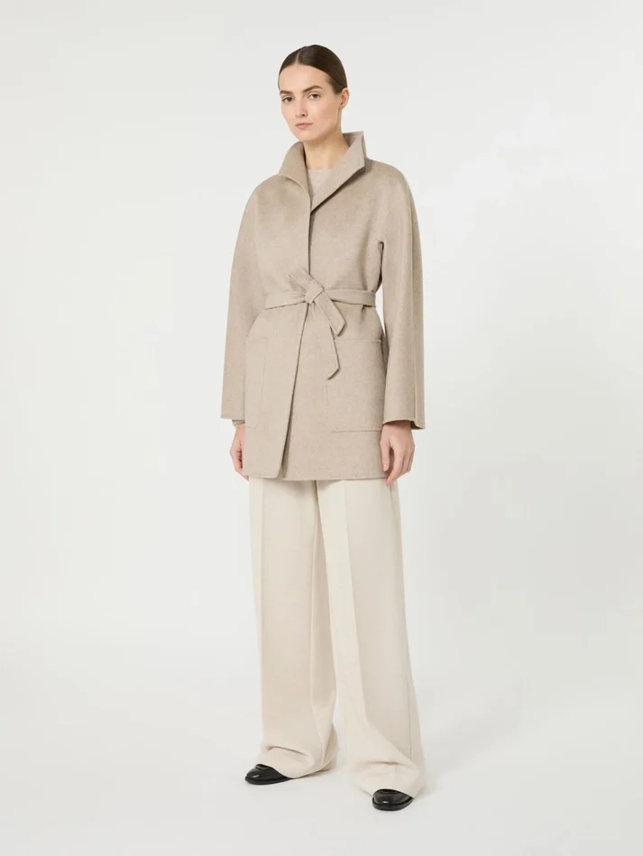 iconic, short max mara coat featuring a straight, cardigan-inspired silhouette.