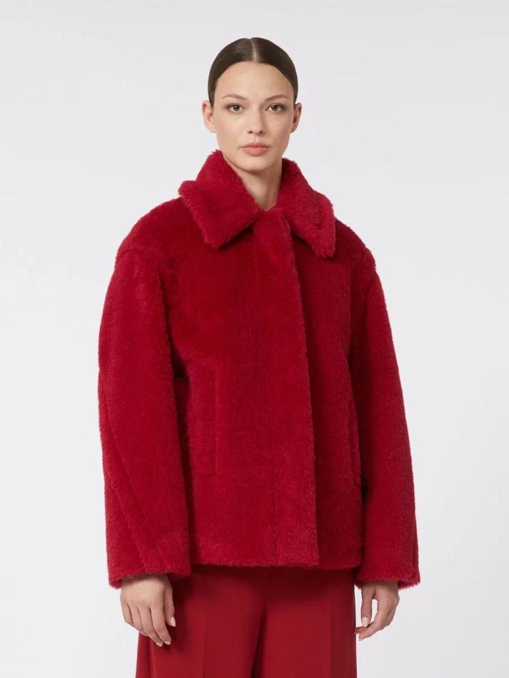 - coat made of alpaca and wool teddy fabric on a silk base