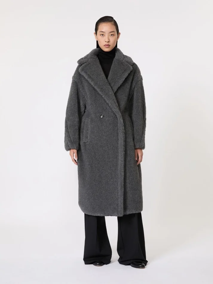 designed in 2013, the teddy bear coat was inspired by an archival garment from the ’80s and immediately became an it-coat. stars and influencers loved its perfect alchemic blend of glamour and playfulness. its distinctive texture is created using advanced technology, developed by our creative team in collaboration with an italian supplier, to create a one-of-a-kind faux fur. the coat’s abundant volume is a celebration of the opulent extravagance of this fabric.