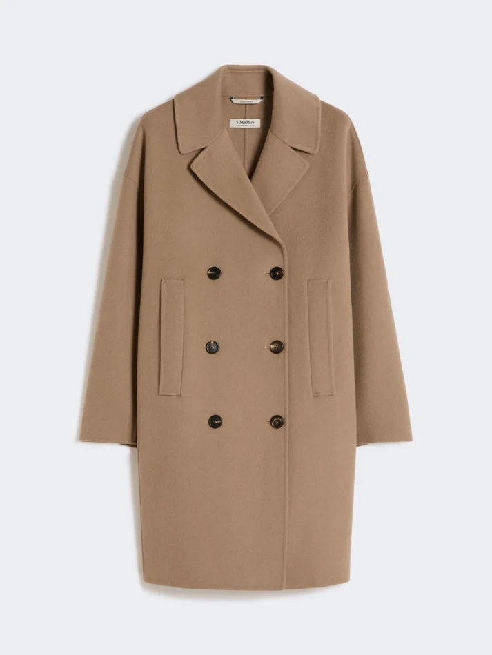 straight-fit double-breasted midi coat.