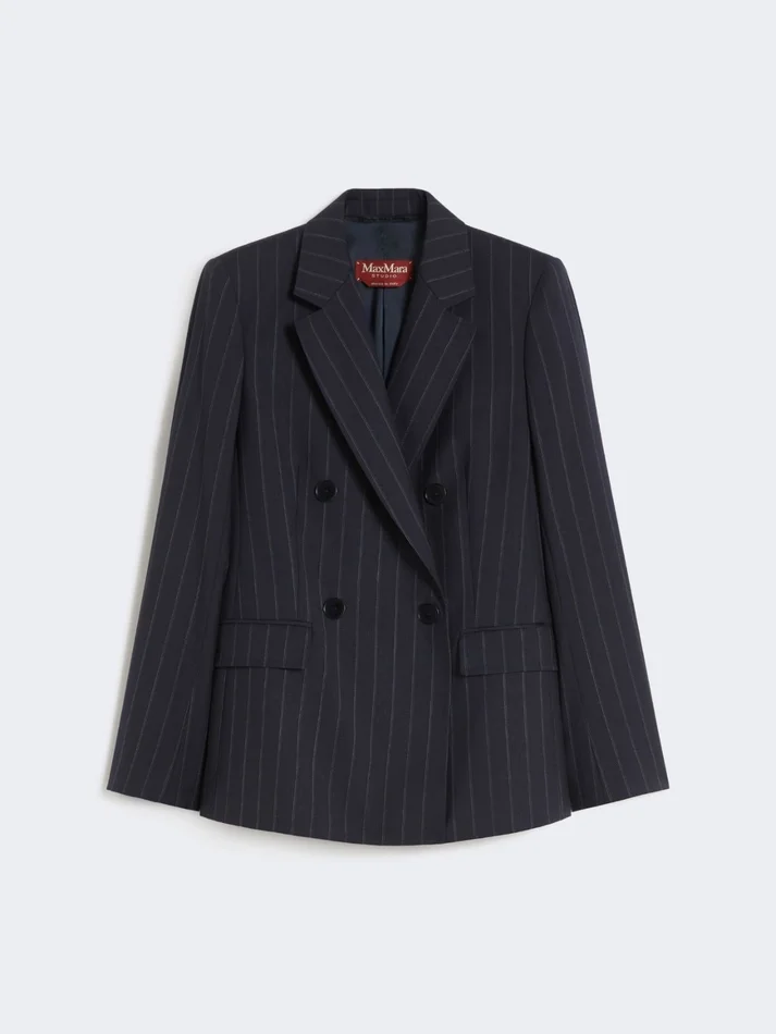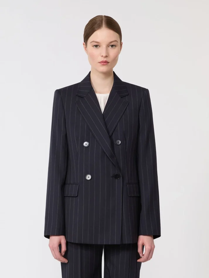 Double-breasted pinstripe wool blazer, navy
