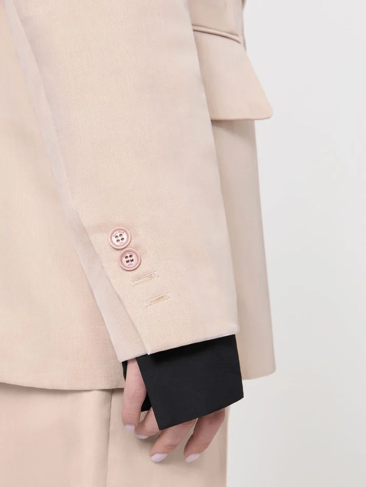 - set-in sleeves with slit and buttons at the cuff