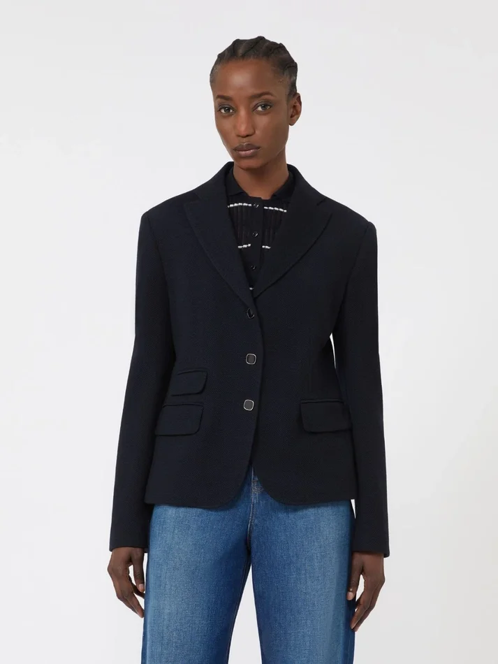 - jacket in double-faced wool and cotton piqua jersey fabric