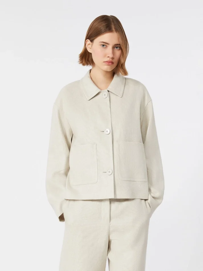 - jacket in cotton and linen basketweave fabric