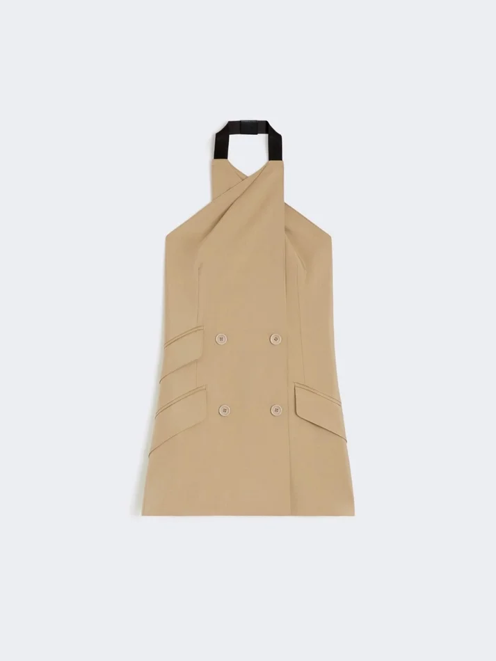 Be the first to review “Wool and silk poplin sleeveless jacket, camel”