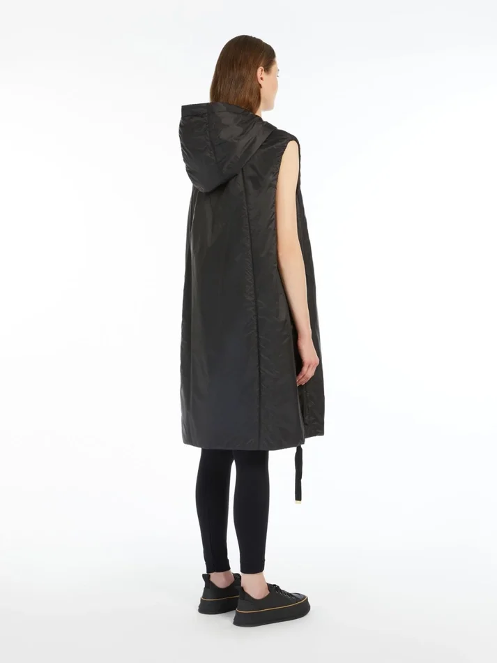 midi gilet with hood and drawstring hem.