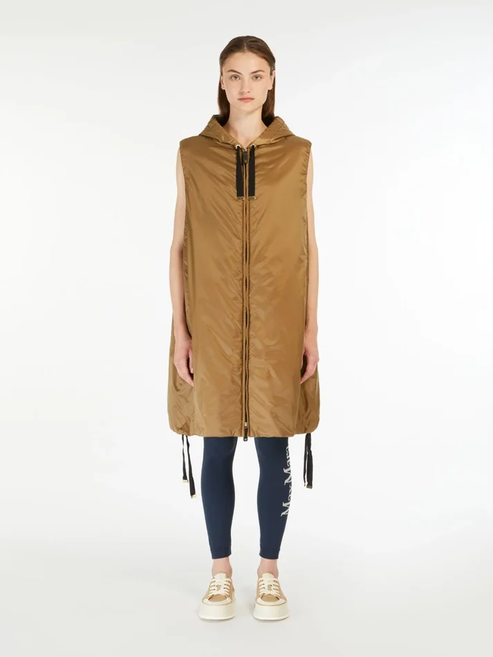 fabric 100% polyester; lining 100% polyester; with quilting in 48% polyester, 48% camelwool, 4% silk; – exclusive of decoration.