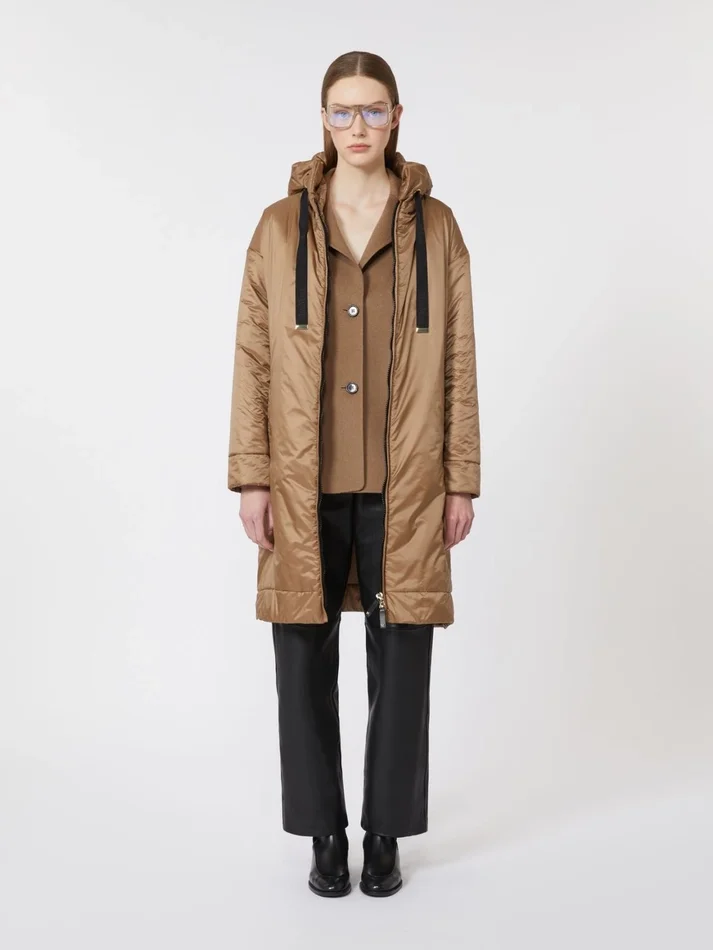 fabric 100% polyester; lining 100% polyester; with quilting in 48% polyester, 48% camelwool, 4% silk; – exclusive of decoration; care case 100% polyamide.