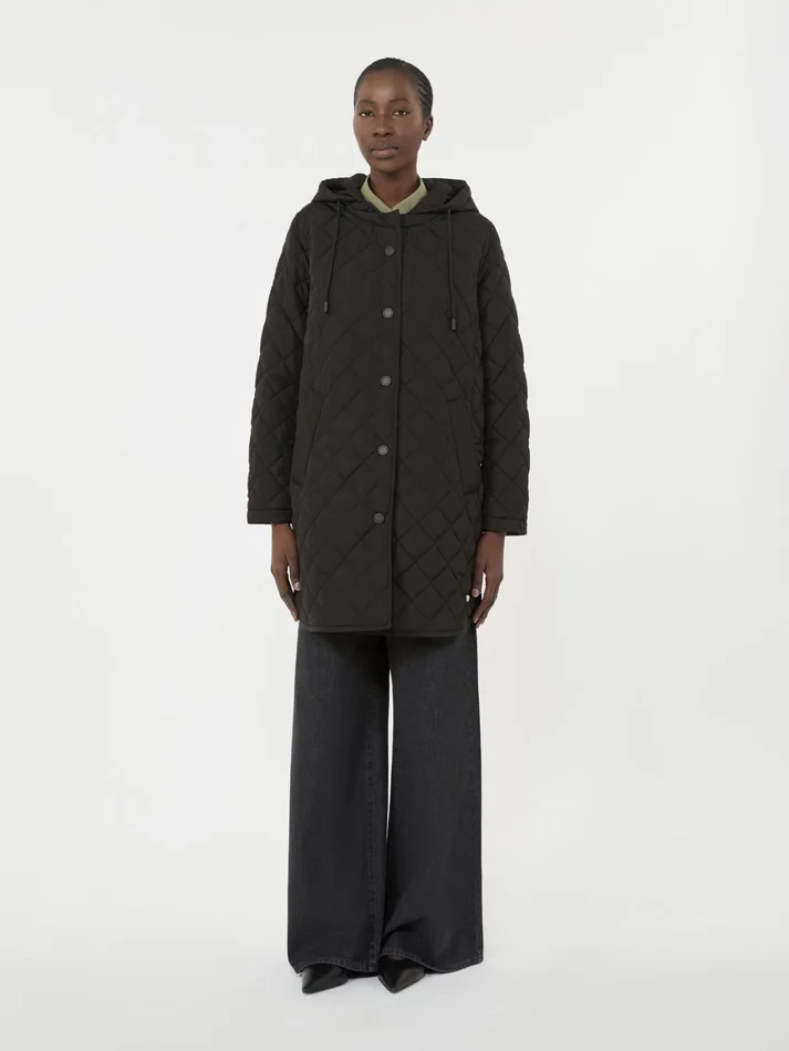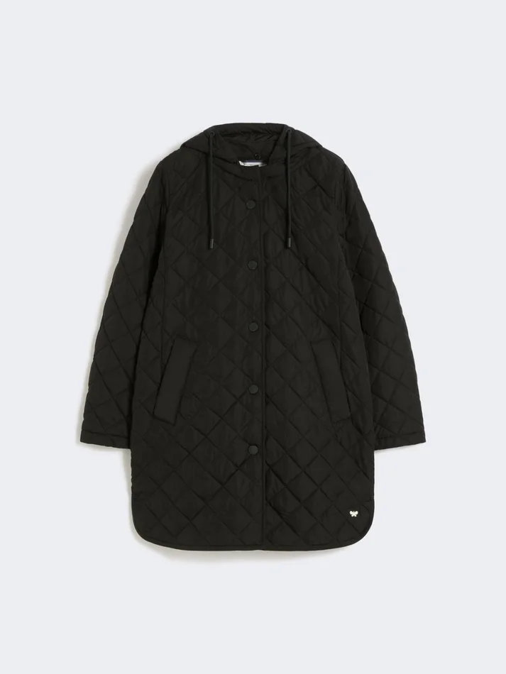 padded midi parka featuring all-over diamond-quilted detail.