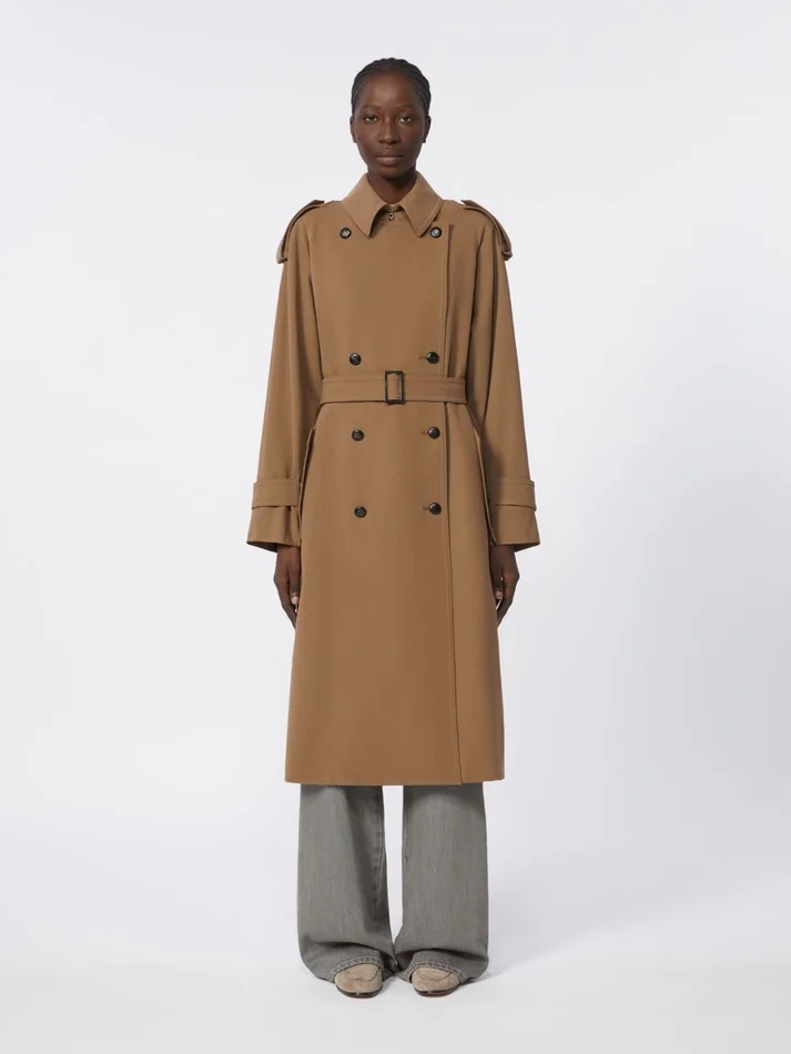 • trench coat in water-repellent pure wool gabardine fabric