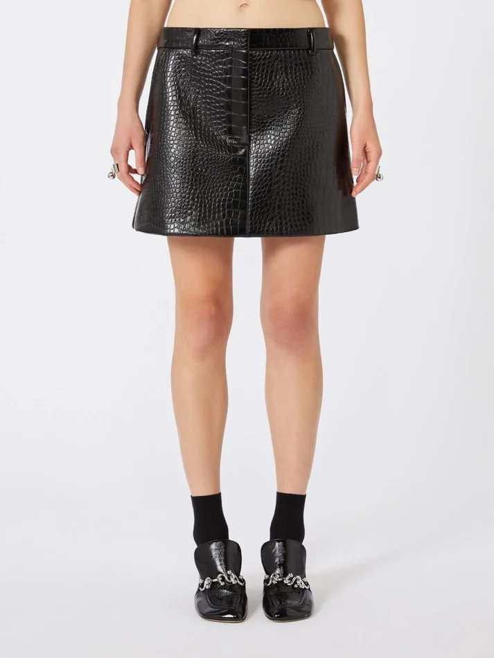 - mini skirt in patent leather with alligator effect bonded with jersey on the inside