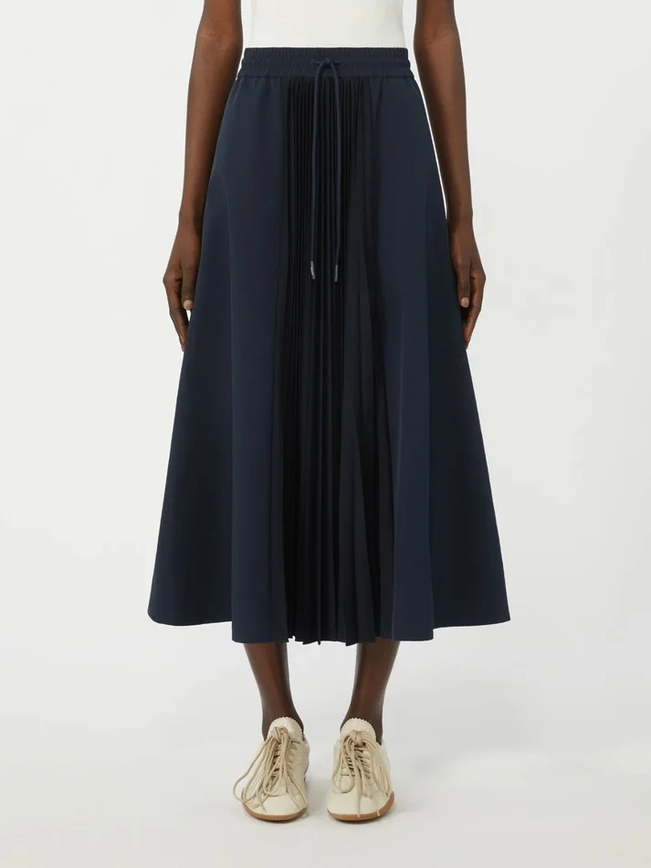 long skirt with pleated crepe jersey insert at the centre front.