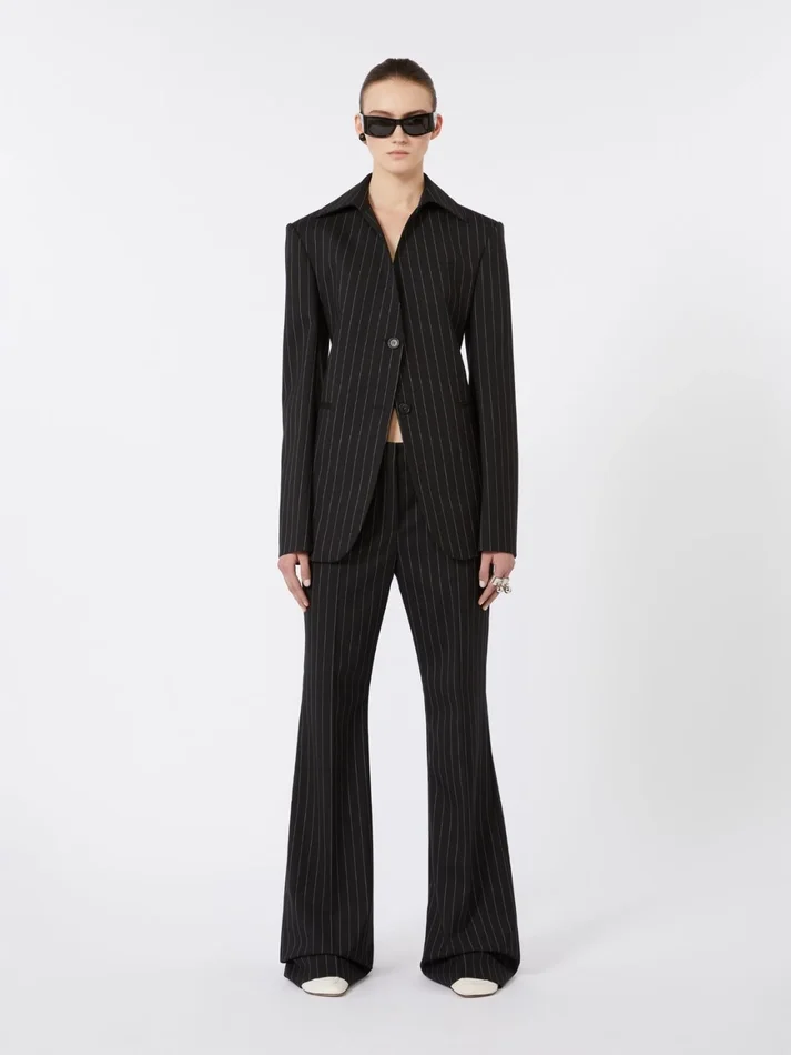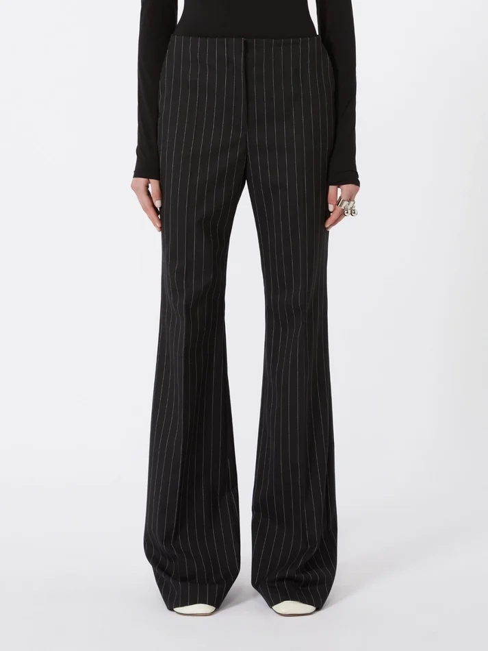 Flared pinstripe wool trousers, black