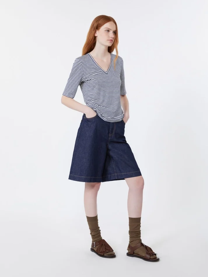 Be the first to review “Stretch linen jersey v-neck t-shirt, ultramarine”