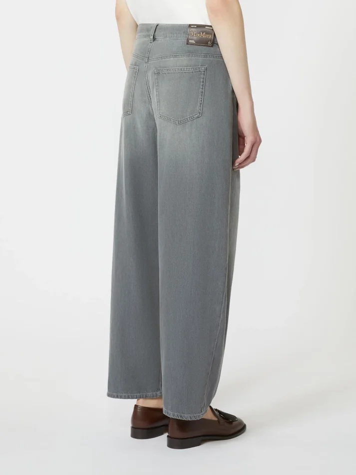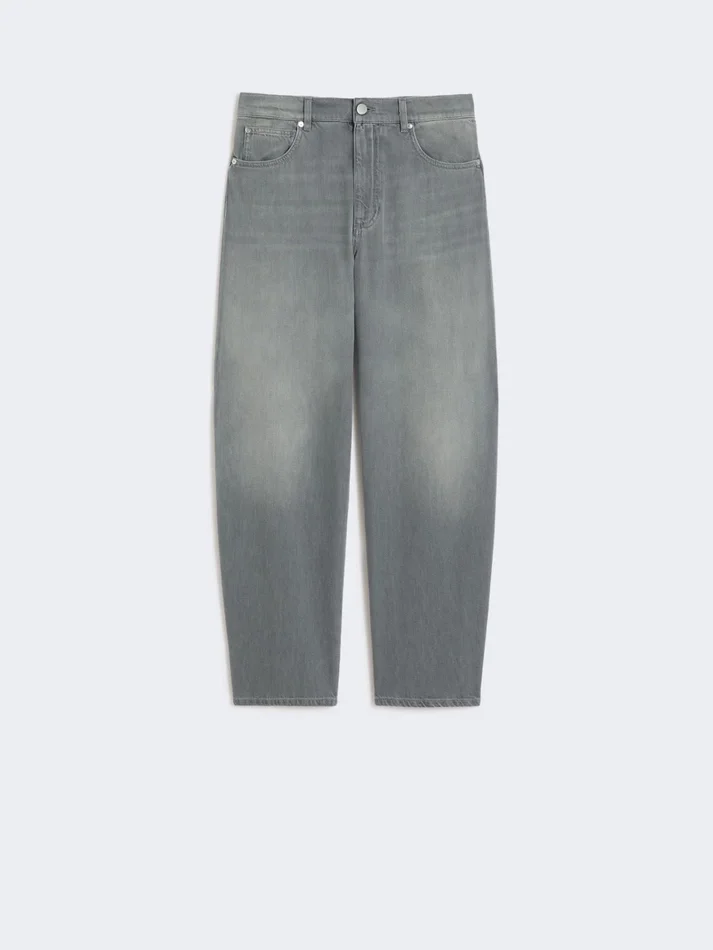 five-pocket jeans with a barrel leg silhouette, cropped to the ankle.