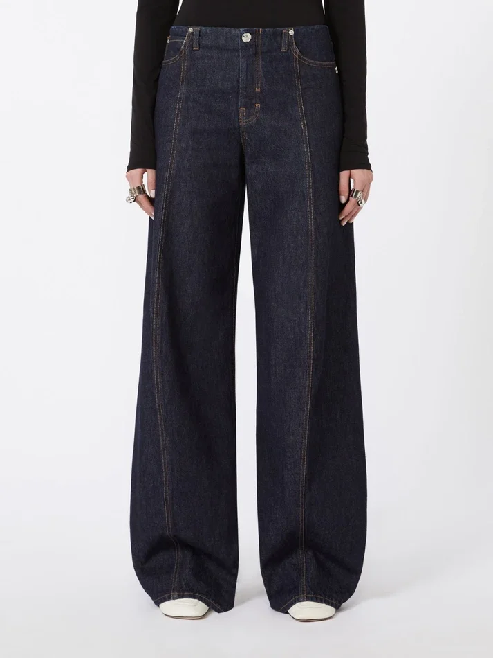 - authentic, non-stretch indigo denim trousers with a dark, clean, medium vintage treatment