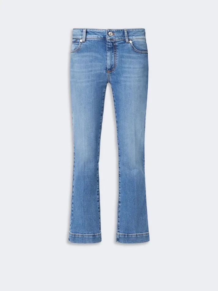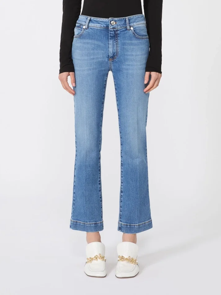 the perfect jeans, every time: low waist, flared hems and the perfect construction to show off your figure. cropped at the ankle for an even more streamlined effect.