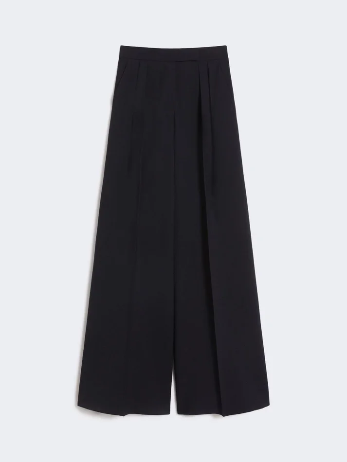 wide-leg trousers featuring double dart detail that bestows volume and structure to the garment.